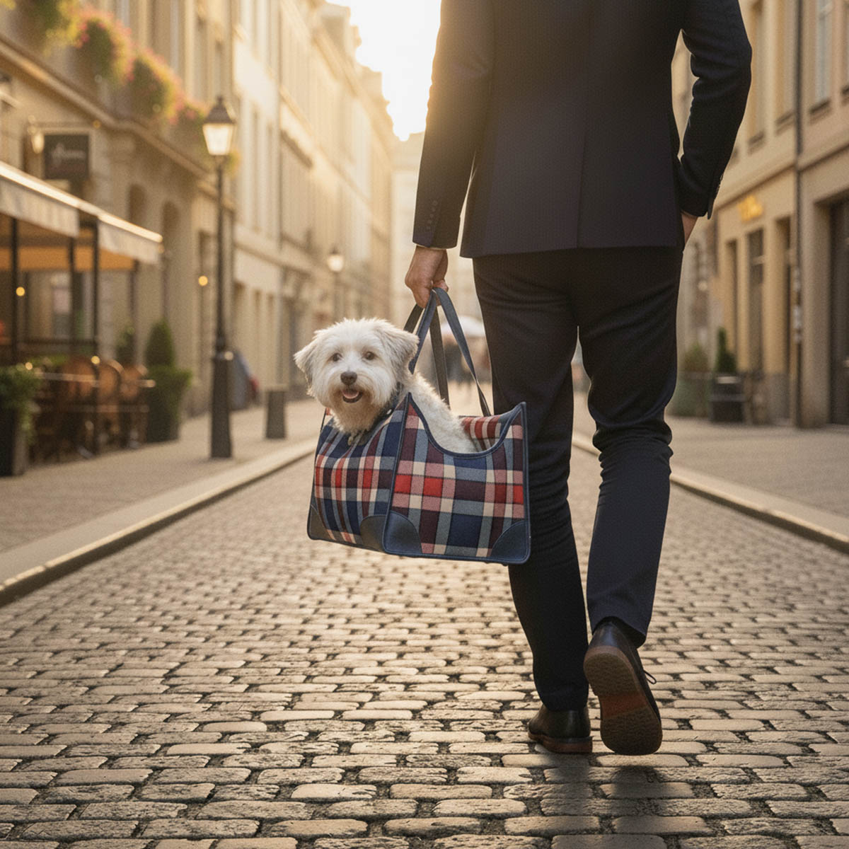 Sac de transport Mokka – Avec poche, laisse de sécurité et sac en tissu – Similicuir et polyester - T1112-P